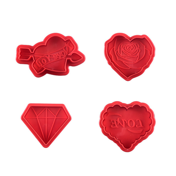 מכירה לוהטת האהבה יום קוקי עובש עלה לב יהלומי אפיית עוגת מעוטר כלים 4pcs סט פלסטיק לחיצה קאטר